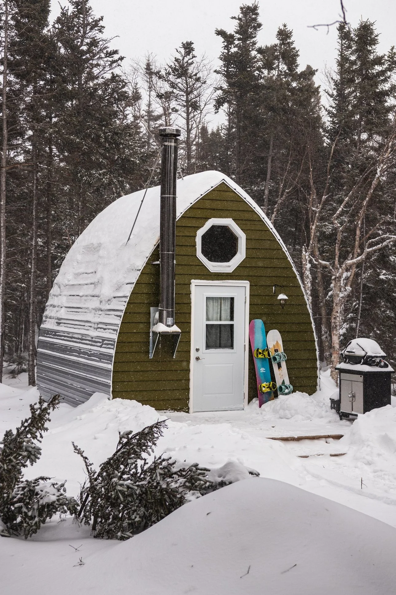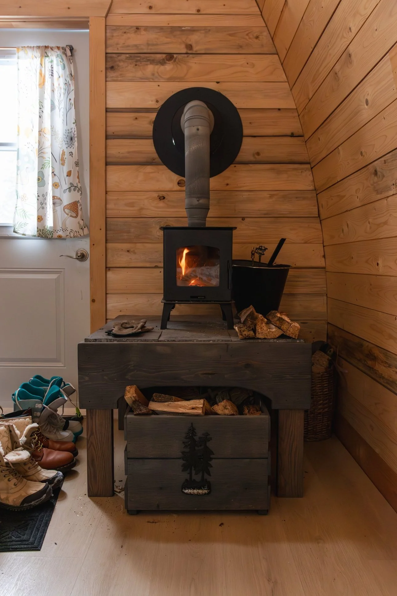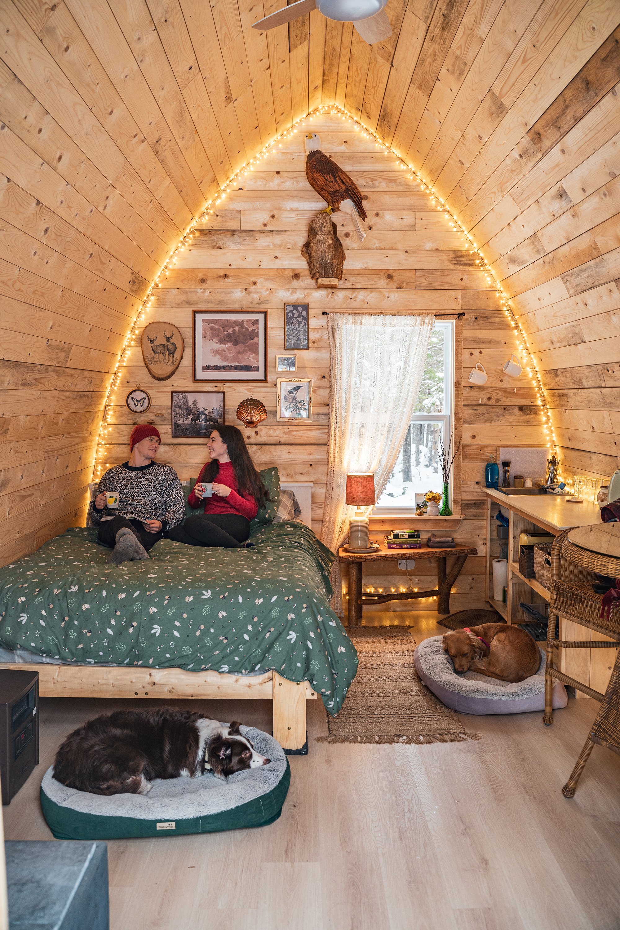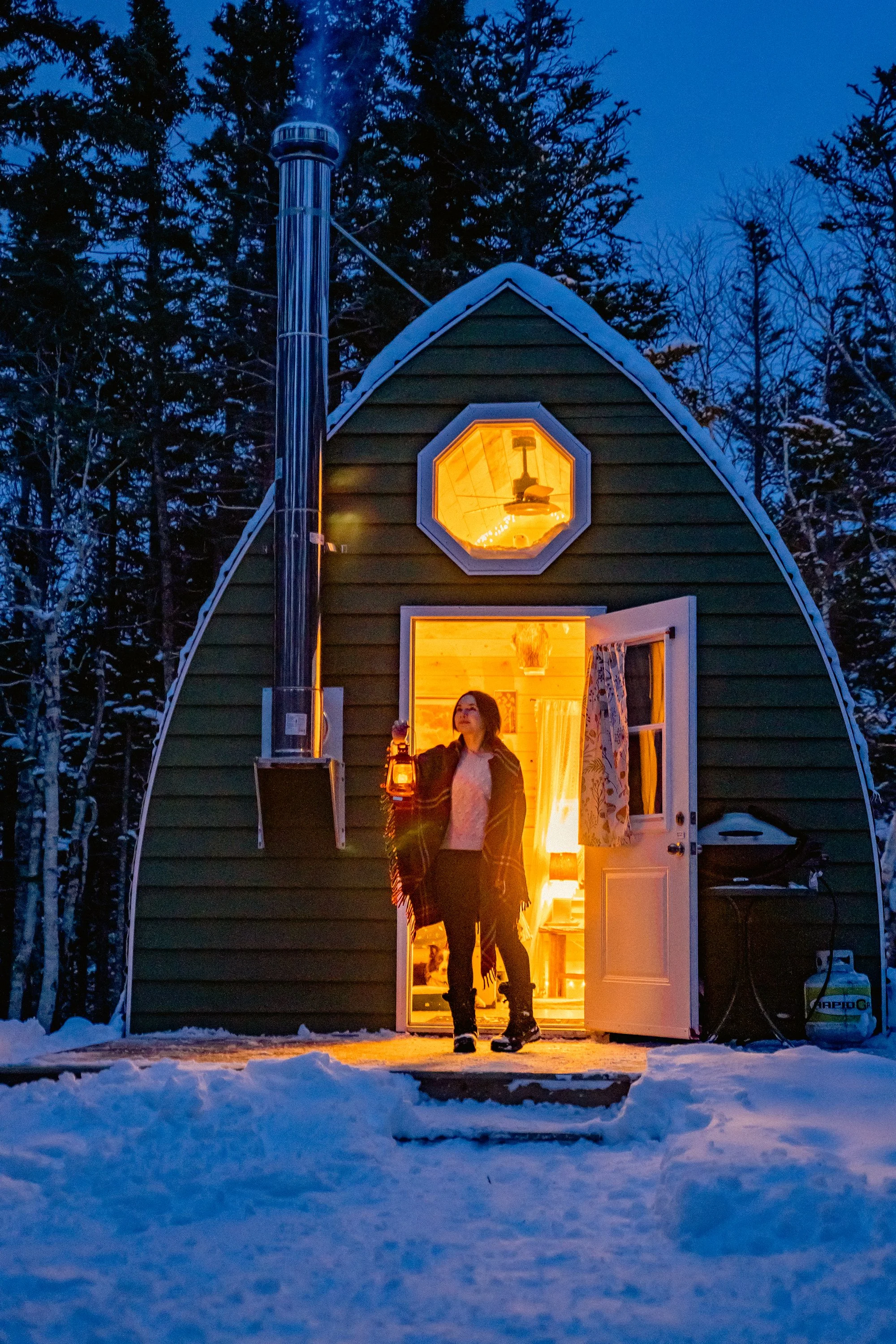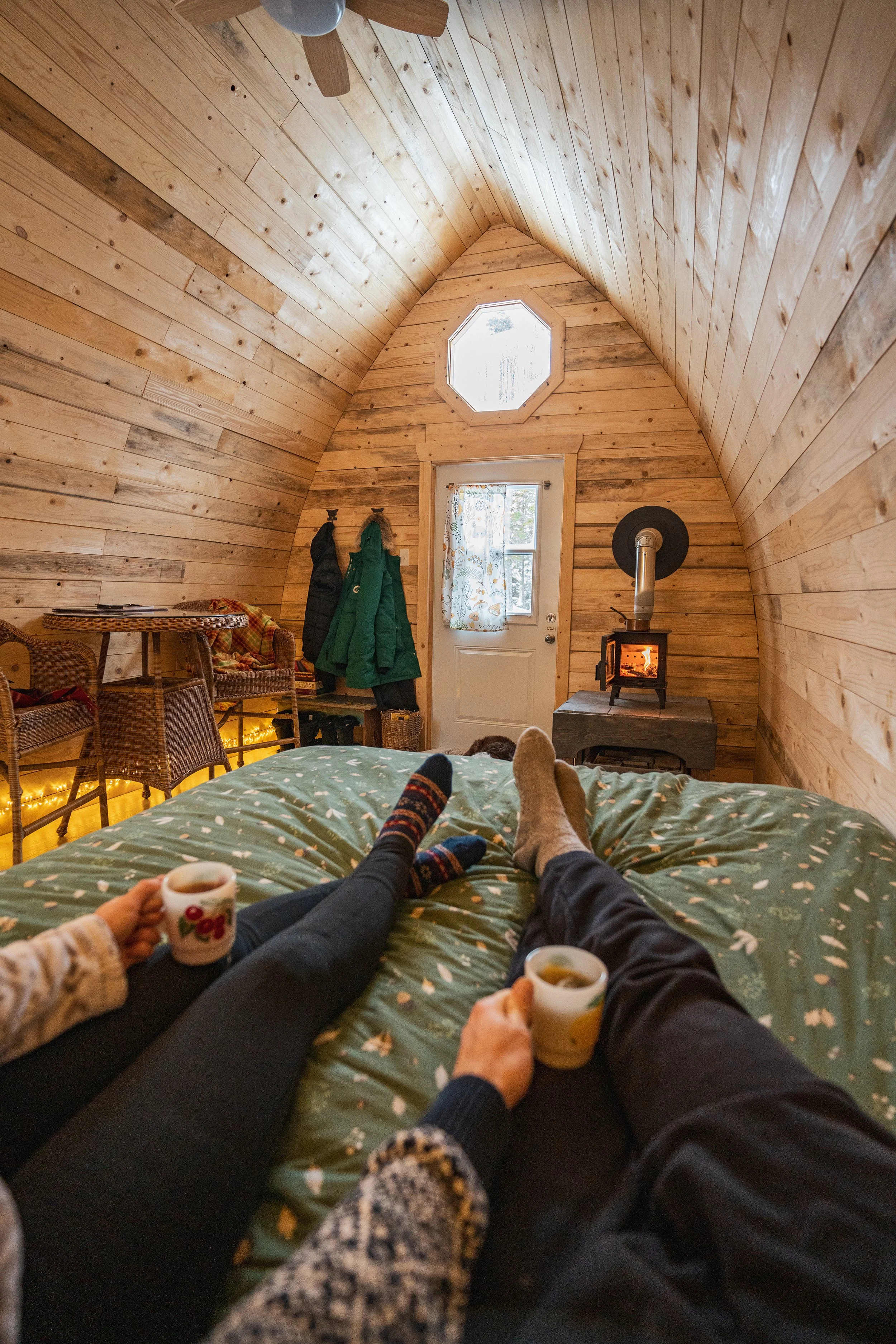 Winter guests should be familiar with wood stoves and looking for the hardy experience of touching your bare ass to an outhouse at -5 degrees. Imagine: you will be lifting a 5 gallon jug of water to wash your dishes and tending to a wood stove frequently :) That is part of the adventure! The right guests will feel happy there is an electric kettle to make it easy as they could be accustomed to washing pots and pans in cold rivers. If you are looking for a more relaxing experience with running water, bath tub, wood stove but also electric heat - you should check out Sunnyside or Mountainside.
