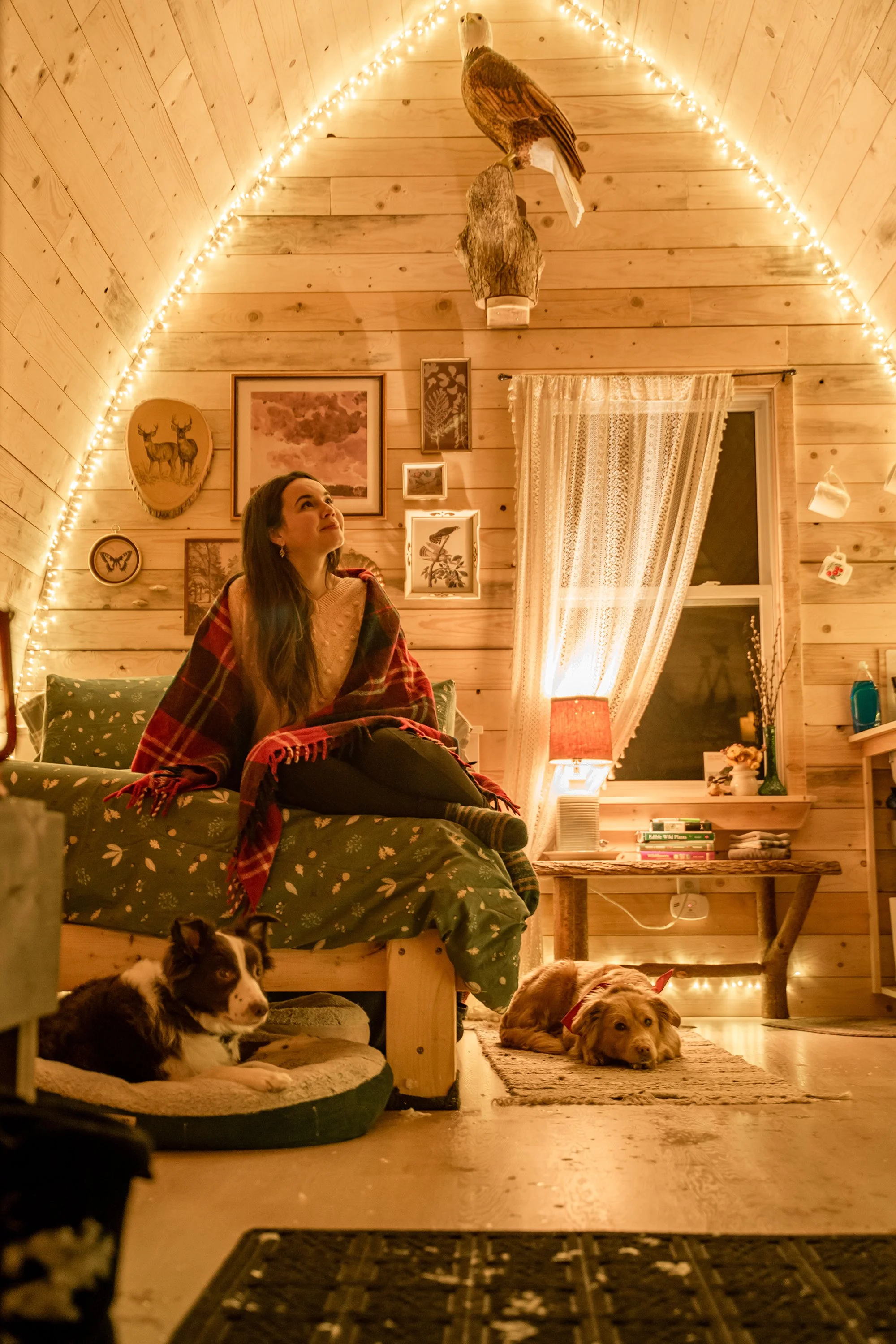 This cabin is for outdoorsy people to enjoy camping but somewhat luxuriously. Inspired by the years I lived in off grid cabins and built by me and my Dad, this space was designed with intention and should have everything you need. There is no running water but there is a draining sink with water provided. There is power but no wifi directly at this cabin, due to its remote location. The bathroom is an outhouse with access to a full bathroom & shower elsewhere on the property. It has privacy, its own fire pit and picnic table, and is available all year long. You can drive up to it and park.